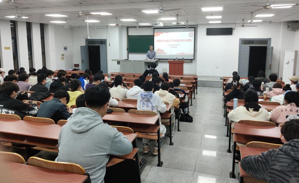 为深入贯彻习近平总书记关于“大思政课”建设的重要指示精神,进一步推进学院思想政治教育工作,10月6日晚上,学院党委书记张光明以“新时代全面从严治党的伟大实践”为主题,为大二学生讲述了一堂内容丰富、生动精彩的形势与政策课。