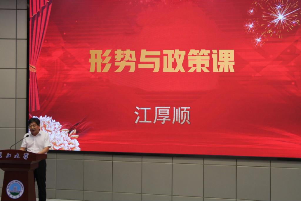 最后,江院长向我院2022级新生提出了四十八字殷切希望:夯实基础、珍惜时光、合理规划、久久为功;心存感恩、志存高远、明晰目标、腾飞逐梦;求真务实、宽厚包容、和谐共进、自强不息。