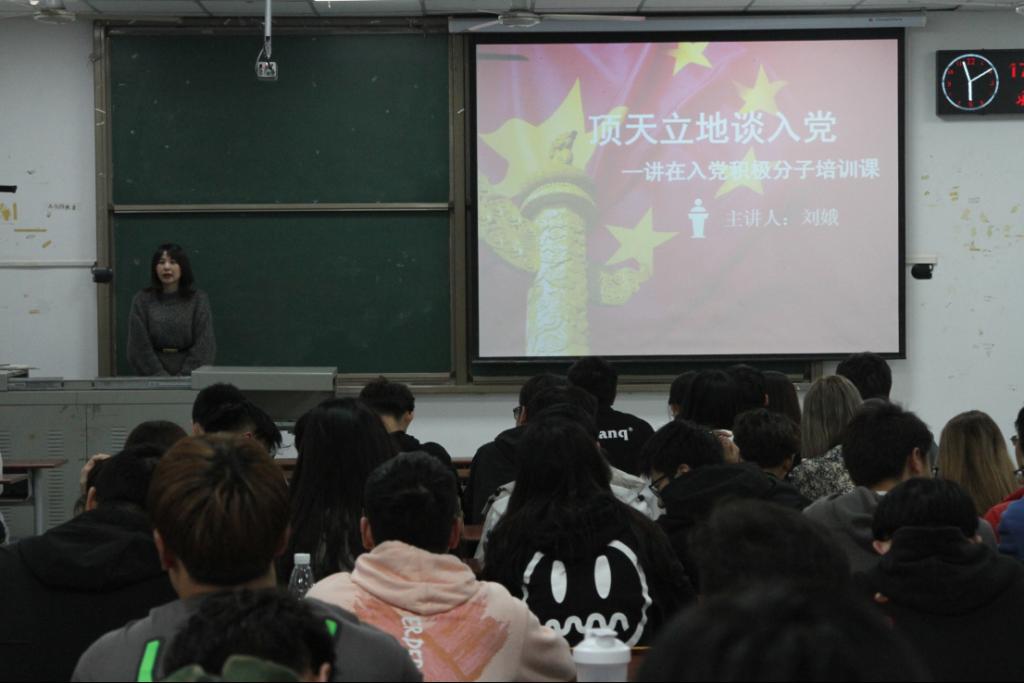 培训中,刘书记从三方面进行阐述:一、党组织需要什么样的人。二、对党组织坦诚。三、从自愿到志愿。首先,刘书记从党章的第一条引入主旨,她指出:作为入党积极分子,我们应该积极响应党的号召,以党组织给予的任务为己任,服从大局、服务集体。党章第一条规定:年满十八岁的中国工人、农民、军人、知识分子和其他社会阶层的先进分子,承认党的纲领和章程,愿意参加党的一个组织并在其中积极工作、执行党的决议和按期交纳党费的,可以申请加入中国共产党。刘书记以“焦裕禄、朱德元帅、梁思成和林徽因”为例,号召同学们以他们为榜样,为党组织贡献自己的一份力量,在党组织中发光发热。她强调:作为入党积极分子,我们应从三方面来要求自己。一、建立自己的先进性。二、建立自己的群众基础。三、服从大局、服务集体。最后,她以列宁和马尔托夫的革命历程对比为例指出——列宁同志革命成功的根本原因在于其先进性、阶级性、战斗力的良好建立,号召全体入党积极分子学习列宁的革命精神,爱党爱国,服务集体、服从大局。刘书记介绍,成为正式党员需要经历“申请人—入党积极分子—发展对象—预备党员—共产党员”五个身份、“积极分子考察—发展对象考察—预备党员考察—正式党员考察”四个阶段,历时两年,在这期间,我们需要对党信任、对党忠诚,将自己的热忱交予党组织,刘书记指出:作为党组织的一员,我们应不忘初心,对党坦诚,与党组织一起学习,一起成长。
