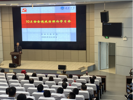 会上,在“习近平新时代中国特色社会主义思想”专题,张光明先后带领大家集中学习了《习近平在纪念中国人民抗日战争暨世界反法西斯战争胜利75周年座谈会上的讲话》、《习近平在全国抗击新冠肺炎疫情表彰大会上的讲话》以及《习近平在教育文化卫生体育领域专家代表座谈会上的讲话》。在“奋进新时代 筑梦双一流”专题,带领大家学习了《关于加强高校党的政治建设的若干措施》和《长江大学加强“学习强国”学习平台推广使用实施办法》,并对学院党支部“学习强国”学习情况做了通报和分析。