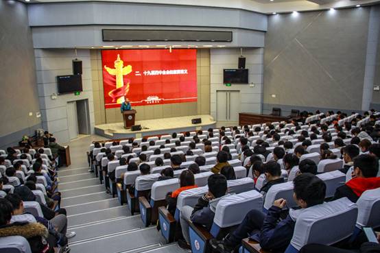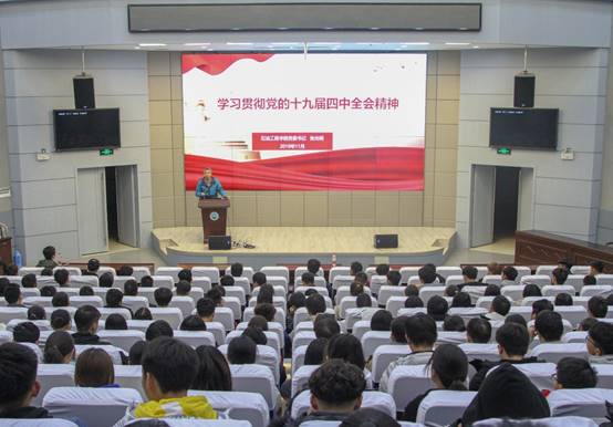 (通讯员 龚焕文/文 刘圳洲/摄)2019年11月27日晚,学院党委书记张光明教授于石油科技大楼学术报告厅为大家带来有关传达党的十九届四中全会精神的讲话,19级辅导员刘少文老师及全体19级新生到会学习张书记讲话内容。