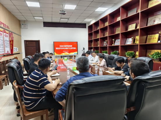 4月17日下午,yl23411永利(集团)有限公司官网党委理论学习中心组在石油科技大楼C111会议室开展集中学习扩大会,中心组成员、各系(中心、室)主任、研究所所长以线上线下结合方式参会。