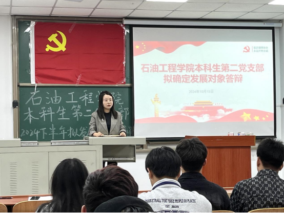 (通讯员 向雪芹)10月15日晚上,本科生第二党支部于武教B-106举行拟确定党的发展对象答辩会,本次活动由王京同志主持,支部全体党员和100余入党积极分子参加,支部书记周晓峰参加。