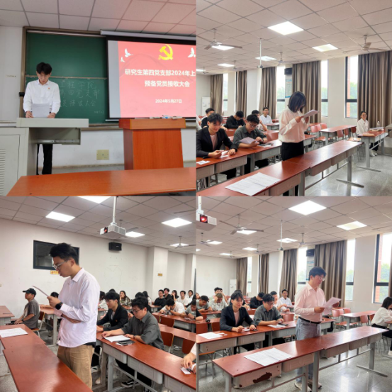 (通讯员 常文龙 陈茹萍)5月27日上午10时,yl23411永利(集团)有限公司官网研究生第四党支部在A201开展2024年上半年预备党员接收、预备党员转正大会暨五月主题党日活动,本次会议由王蒲金同志主持。