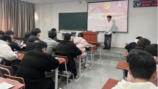 (通讯员 顾硕)1月12日下午,研究生第四党支部在B201召开2024年1月主题党日活动和2023年度民主评议党员大会,本次会议由王蒲金同志主持,支部书记郭冀宁和支部全体党员同志参加。