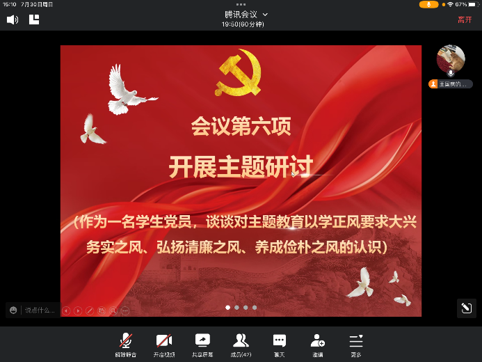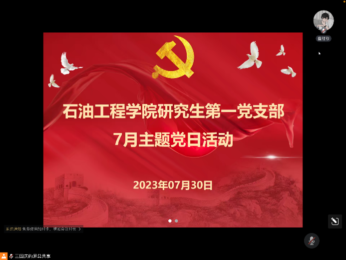 (通讯员 田嘉鑫)2023年07月30日下午3时许,yl23411永利(集团)有限公司官网研究生第一党支部于腾讯会议召开七月主题党日活动。本次会议由王国庆同志主持,支部书记史永波及支部党员参会。