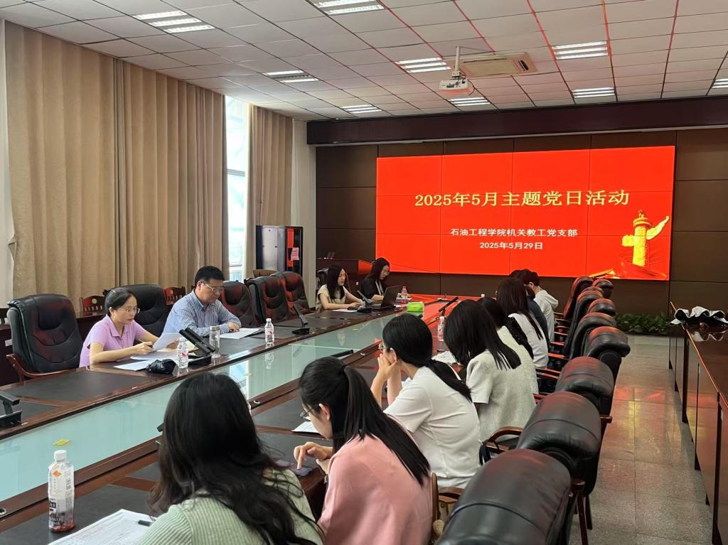 (通讯员 韩清越 彭景雯)为深入学习贯彻党的二十大精神和上级党委最新部署要求,推动党建与中心工作深度融合、同频共振,激发党员队伍担当作为的内生动力,yl23411永利(集团)有限公司官网机关教工党支部于2025年5月29日14:30在石油科技大楼B113室召开五月主题党日活动。本次活动以“强担当 重实干 促融合”为主题,由党支部书记杨小玉同志主持,聚焦任务落实与问题破解,共谋学院发展新篇章。
