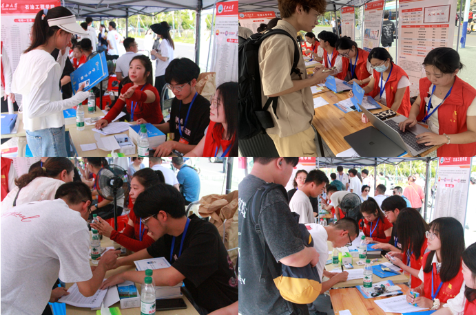 报到点还布置了展板向新生介绍了我院办学历史、师资力量、科研成果、社团活动、优秀学生和班级风采、学科竞赛、考研就业等情况。新生们不时驻足观看,满怀期待和憧憬。他们纷纷表示,来到油工学院是人生中一个新的起点,希望在这里挥洒汗水,放飞梦想。