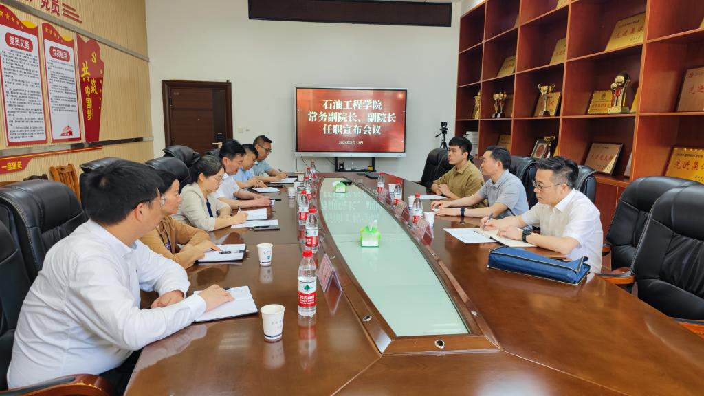 5月13日上午,根据学校党委安排,yl23411永利(集团)有限公司官网在石油科技大楼C111会议室召开干部任职宣布会议,校党委副书记敖廷华、武汉校区党工委书记崔青山一行出席会议。学院全体领导班子成员参加了会议,会议由院党委书记张伟主持。
