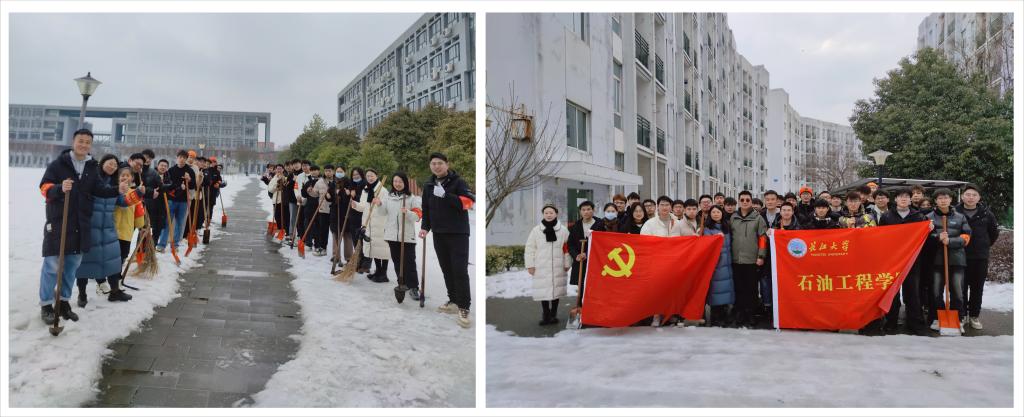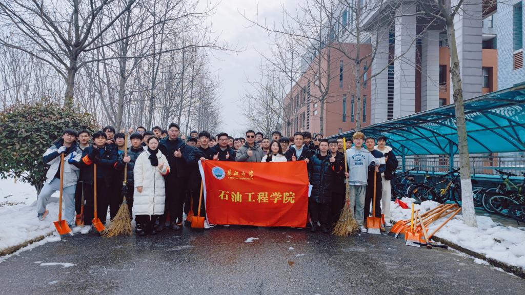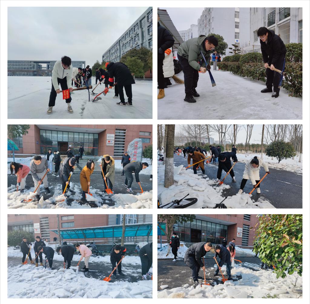 本次铲雪除冰行动消除了校园的安全隐患,为全院师生开辟了一条洋溢着温情的安全之路。