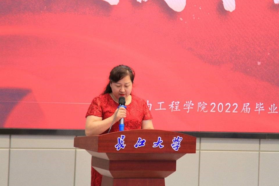 仪式第二项,江厚顺院长致辞。江院长对2022届毕业生顺利毕业表示祝贺。新起点,需要再次审视自己的人生目标和规划。他希望同学们在未来的日子里,能够始终秉持长大人脚踏实地、勤勉奋斗的优秀品格,坚守理想,以不懈追求、敢于坚持的精神,迎接挑战,以负责任的态度做人做事,尽快成长为栋梁之才,承担起对世界、国家、民族和家庭的责任。希望他们不忘母校,谨遵老师教诲,锐意进取,再创辉煌。