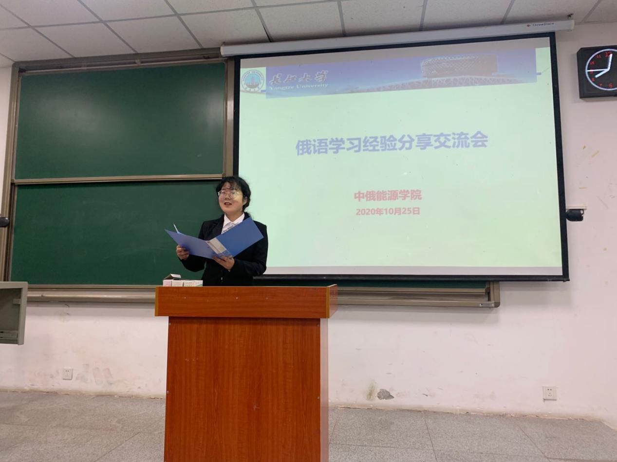 10月25日晚,我院在武教A106举行了“俄语学习经验分享交流会”。中俄能源学院科长喻选梅老师、文丽晨老师、俄语教师王翌婵博士、中俄试点班18级学生黄盟、金铭、刘玉龙、魏江飞及中俄试点班19级全体同学参加了此次交流会。会议由中俄能源学院文丽晨老师主持。