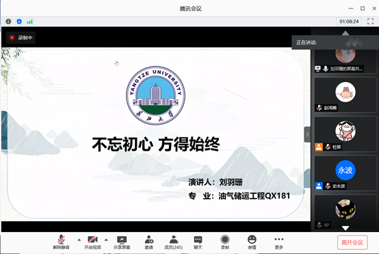 优秀在校生刘羽珊同学以“不忘初心,方得始终”为主题,以过来人的身份讲述了她在长大的目前学习的状态和感受。告诉同学们“也许我们都不够优秀,但我们都在变得更优秀”、“知识不止在于书本,更需要在实验室获得实践。”