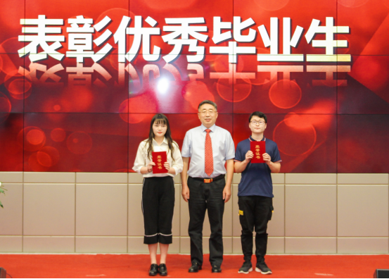 学院副院长张引弟宣读优秀毕业生表彰文件,校党委副书记蒋光忠为优秀毕业生代表颁发荣誉证书。