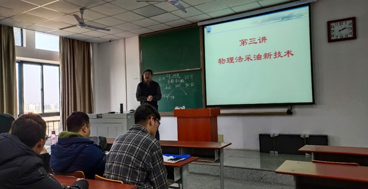 刘捷老师在《现代采油理论与技术进展》第三讲物理法采油新技术的课堂上,以“科学家的赤子之心”做了主题分享,以最近热门电影“我和我的祖国”的片段作为例子,讲述了许多科研工作者为国家和民族的科技发展默默奉献的故事,刘捷勉励研究生要学习老一辈科技工作者无私奉献、不求回报、立志报国的精神。