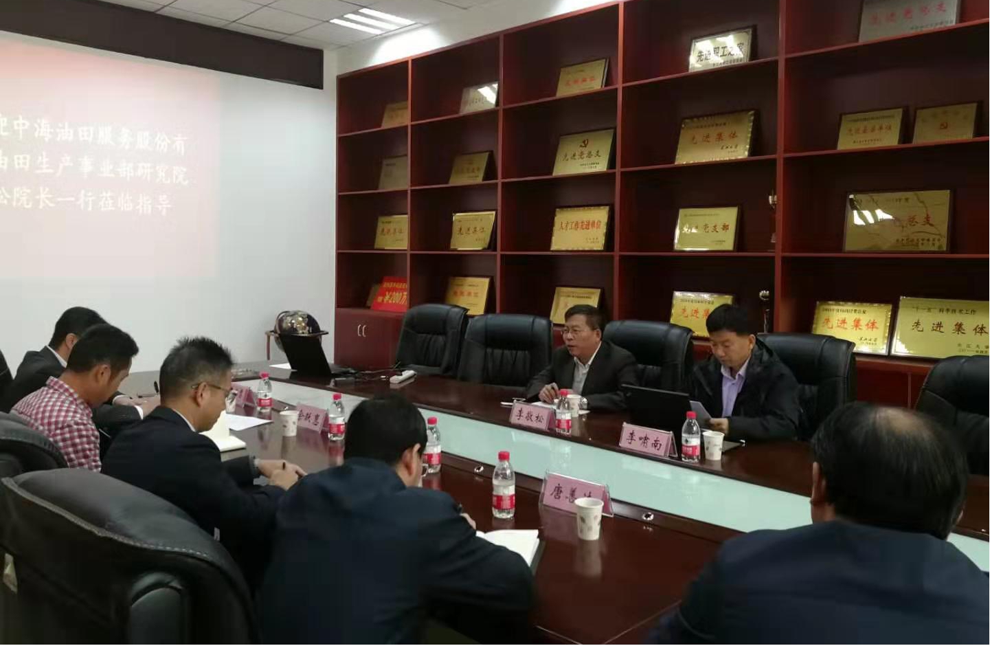 李敬松介绍了中海油服油田生产事业部研究院的基本部门和项目分工,李忠慧介绍了学院及与会教师的基本情况,并就李敬松提出希望与我院保持长期技术合作与交流的意愿做出积极响应。