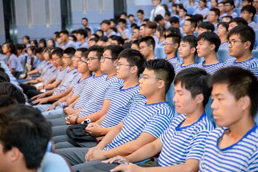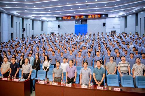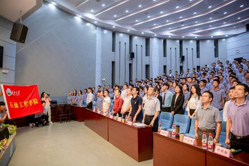 会上,学院教师和全体新生面对院旗,高唱院歌《江汉石油之歌》。全场响起激动人心的歌词:不畏艰苦,何惧风霜,愿献出青春热血,为祖国繁荣富强……