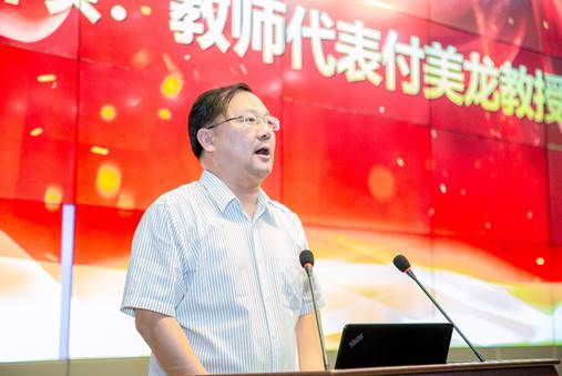长江大学2019年“优秀共产党员”付美龙作为学院教师代表发言,勉励学生以“民族柱石、国脉钜工”的勇气和担当,共同创造学院更加美好的明天。大学生涯如何度过?他说:“大学最重要的就是要有规划,过好大学的‘三室一厅’——教室、寝室、图书室和学术报告厅。”他希望广大学生在四年的学习和历练之后,要具备大爱无疆、大任无怨、大智若愚、自律强大的优秀品质。