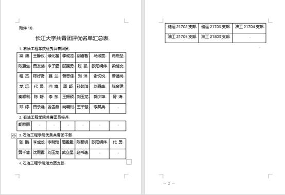 各支部: 经本人申请,学院团委推荐,梁潇等41名同学评为“优秀共青团员”,张鹏等12名同学评为“优秀共青团干部”,胡晓丽评为“共青团员标兵”,储运21702、储运21703、油工21704、油工21705、油工21803评为“活力团支部”,现予以公示(名单见附件)。