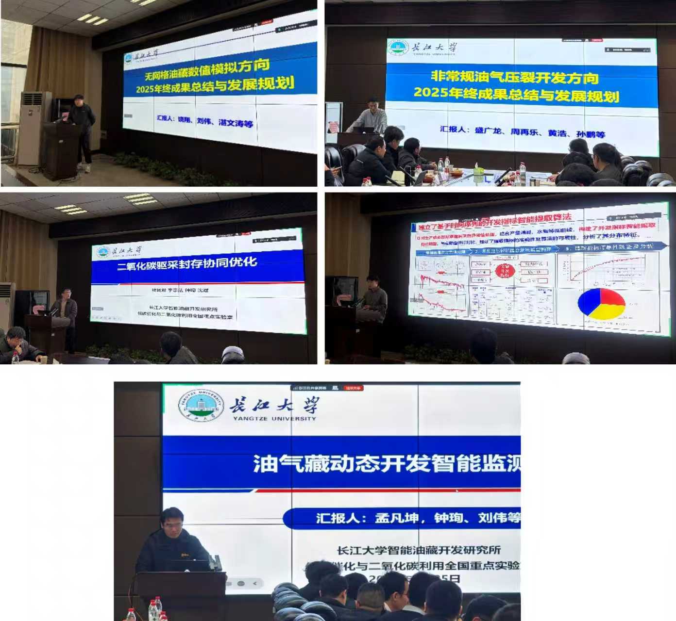 会议下一环节,来自研究所的5位老师代表,分别围绕五大核心研究方向,系统汇报了2025年度科研工作进展,并结合学科发展趋势与国家战略需求,明确了2026年重点研究任务、技术攻关目标及实施路径,多维度彰显了团队在智能油藏开发领域深耕细作的扎实功底与突破关键技术瓶颈的创新能力。