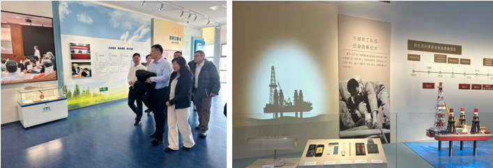 活动采取“先参观、后交流”的形式进行。在参观环节,研究院钻井室主任林海、完井室主任张启龙陪同长江大学团队参观了海洋石油科技成果展览,系统介绍了我国海洋油气勘探开发的技术历程与创新实践,展现了从浅海到深海、从常规到非常规的技术跨越,为后续交流提供了丰富的行业背景与技术语境。