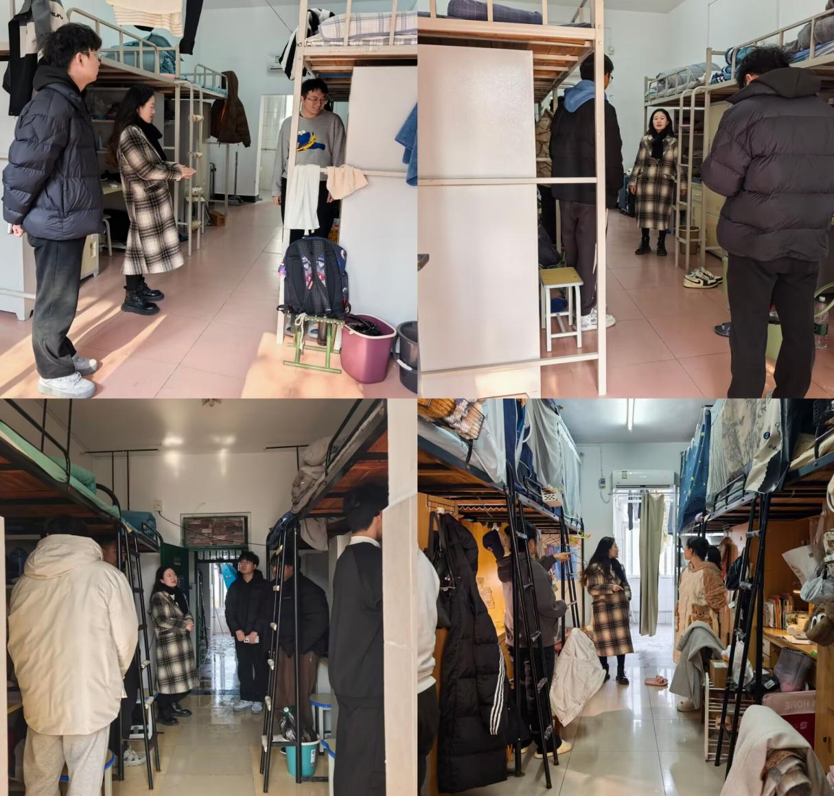 (通讯员 周雨薇 王亭又)寒假临近,为确保学生宿舍的安全与整洁,了解24级学生在期末考试周阶段的学习生活情况,1月2日中午,yl23411永利(集团)有限公司官网24级辅导员周雨薇老师与兼职辅导员江千喜老师对本院24级学生宿舍进行了安全卫生检查工作。 老师们对宿舍的安全及卫生状况进行了认真检查,对卫生情况较差的宿舍现场提出了改进意见,也对卫生情况良好的宿舍给予了肯定和表扬;同学们要注重宿舍的安全卫生,在宿舍中要保持良好的学习和生活习惯,并围绕宿舍安全对即将来临的寒假假期做出相关注意事项的提醒。最后,就同学们的心理情况和学习状态问题,与各个宿舍的同学们进行了亲切交流,鼓励大家合理安排时间,诚信应考,考出好成绩。 此次寒假前宿舍安全卫生检查,强化了同学们的安全卫生意识,促进了良好、健康的寝室环境的营造。不少同学表示,将会以良好的状态迎接期末考试,以快乐的姿态度过美好假期。 【审核:张昊 编辑:韩清越】