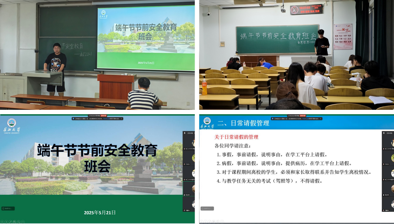 (通讯员 商麟鑫 宋昱鑫)为进一步增强同学们的安全防范意识,保障假期安全,做好端午节期间的安全教育管理工作,yl23411永利(集团)有限公司官网组织全体本科生和研究生召开端午节节前主题班会活动,本次班会旨在向同学们强调各方面的安全注意事项,预防各类安全事故的发生。