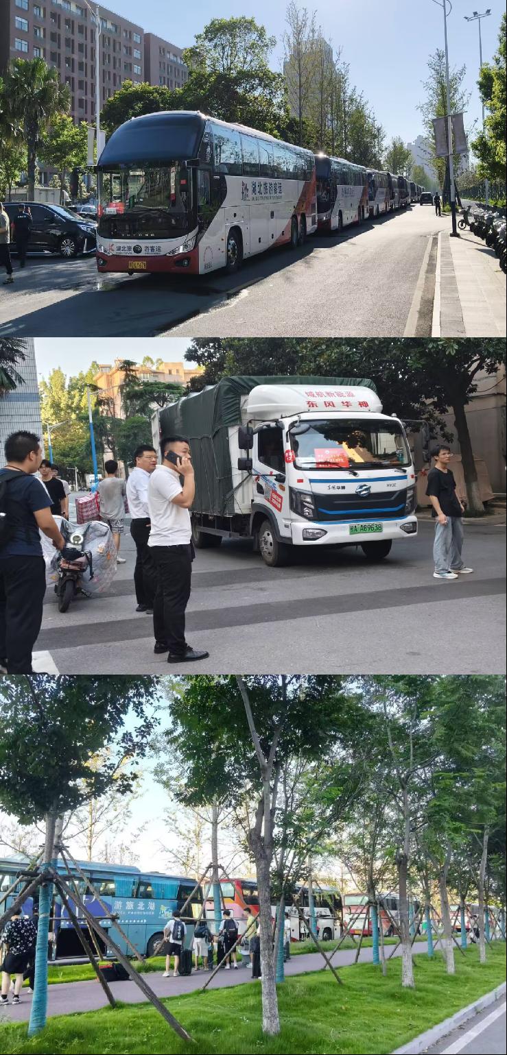此次学生宿舍搬迁工作,学校和学院高度重视、提前谋划,成立了专项工作组,对车辆调度、行李搬运、后勤保障等各个环节进行统筹规划。在物资准备方面,为方便学生分类整理物品,特为每位学生准备3个专用行李袋;在运输保障方面,采取“人货分离”模式,共调配22辆货车负责行李运输,11辆客车专程护送学生,确保搬迁工作安全高效进行。