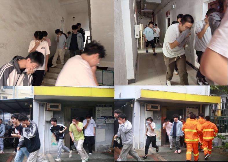 下午2:30,楼道间工作人员口哨准时响起。华林1栋公寓楼各楼层浓烟模拟装置同步启动,一场“实战式”疏散随即展开。在楼层志愿者和安保人员的引导下,同学们迅速用湿毛巾捂住口鼻,弯腰低姿,沿预定路线有序撤离。整个过程中,同学们严守“不推挤、不喧哗、不滞留”的原则,有序下楼,短时间内全部安全疏散至集合点。各班负责人第一时间清点人数并上报,确认无人员滞留后,演练顺利结束。