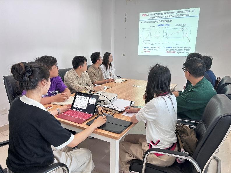 沙龙中,聂彬副教授系统分享了其团队的研究成果,重点围绕超临界CO2压裂的实验方法、裂缝扩展规律及多场耦合机理展开深入讲解,并与参会者就技术应用前景进行了热烈讨论。讲座现场气氛活跃,参会师生针对裂缝扩展的力学机制、技术应用瓶颈、环境效益等焦点问题展开了深入探讨。聂彬副教授结合实验数据和模拟结果,逐一回应了疑问,并强调该研究为页岩气绿色开发提供了新思路。